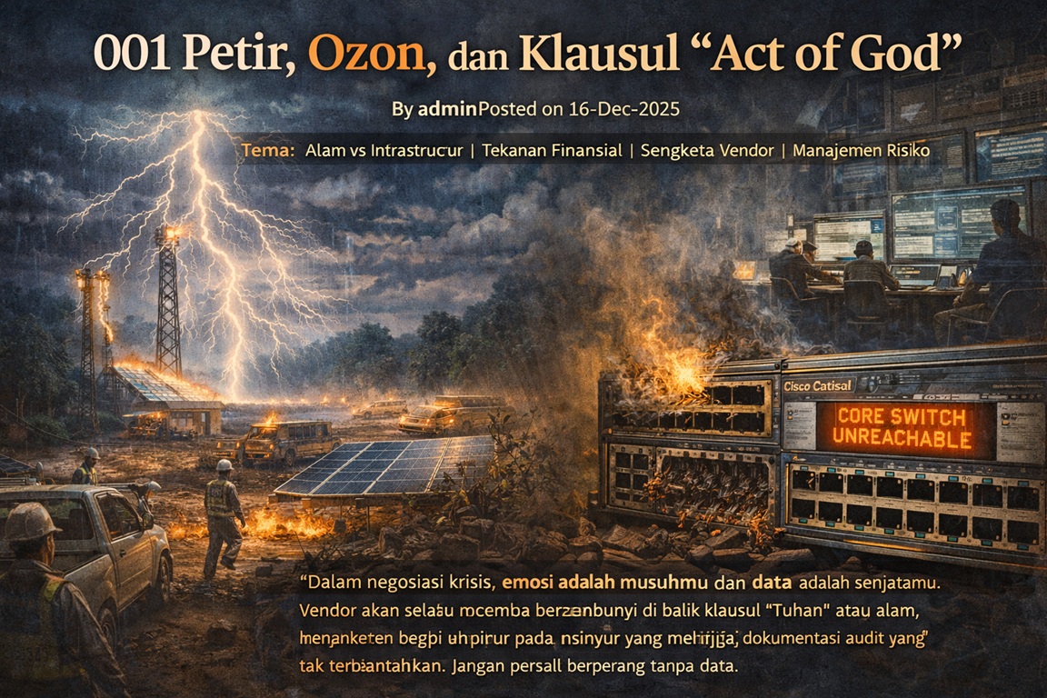 Hari itu saya belajar satu hal penting tentang kepemimpinan di tengah krisis. Emosi tidak menyelesaikan masalah. Di hutan rimba, saat alam mengamuk dan vendor mencoba lari dari tanggung jawab, satu-satunya teman yang bisa menyelamatkan Anda adalah dokumentasi yang rapi. Tuhan mungkin menciptakan petir, tapi kitalah yang bertanggung jawab atas grounding-nya.