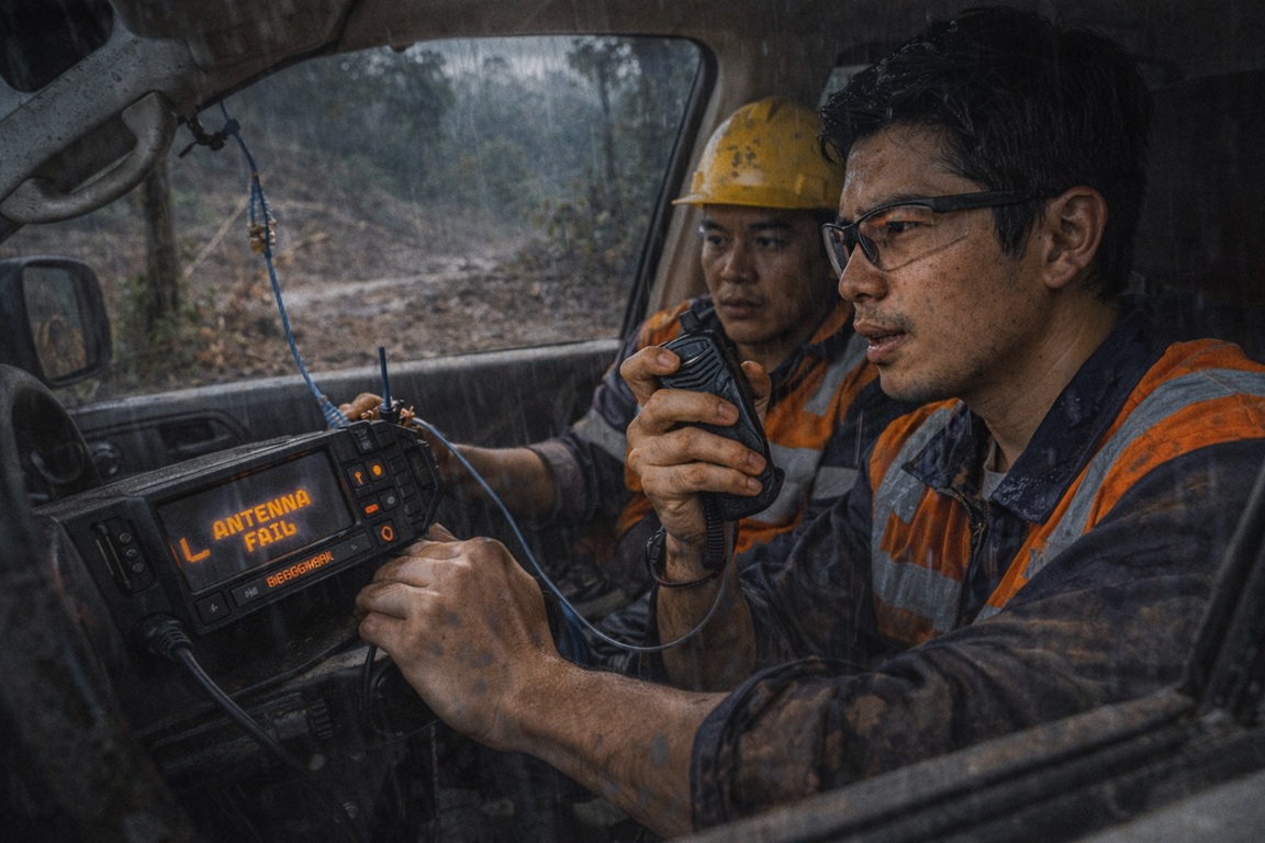 “Radio nyala bukan berarti bagus,” kata Pak Eko. “Kalau antenanya tidak matching, sinyalnya bakal balik lagi ke radio dan membakar komponen di dalamnya. Namanya Reflected Power.”